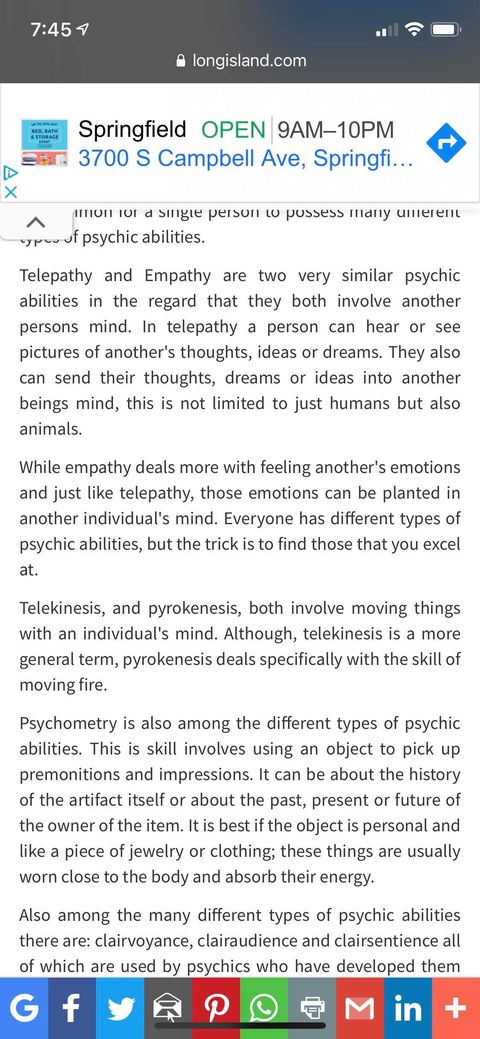 okay that 's a fair point, what about other kinds of readings? Like do you know of anyone that is a medium or good with reading palms or whatever other stuff there might be?