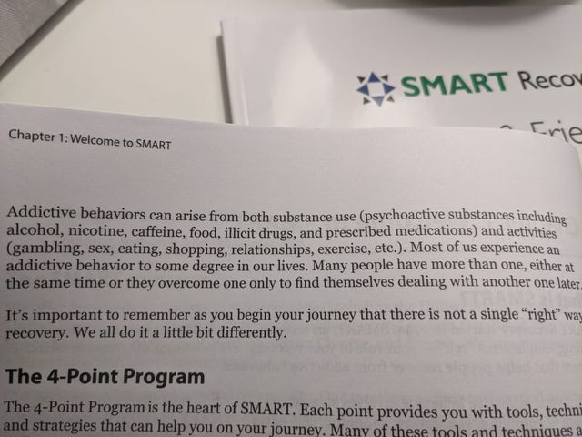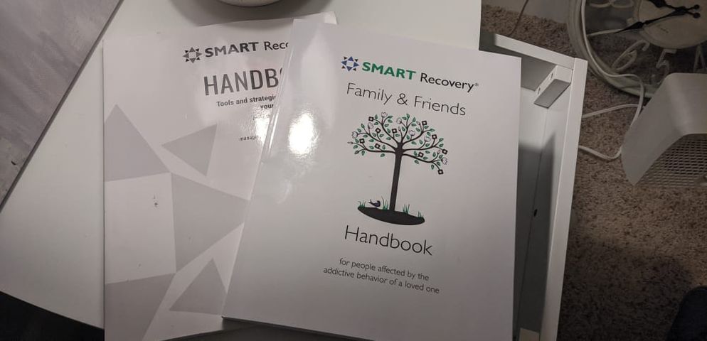 Just to check things out, please go in there on the Tuesday when they 're having their meetings and ask them for a copy of this smart recovery book and a copy of the Smart recovery book for friends and family - The first book is obviously for him and then the friends and family book is for you