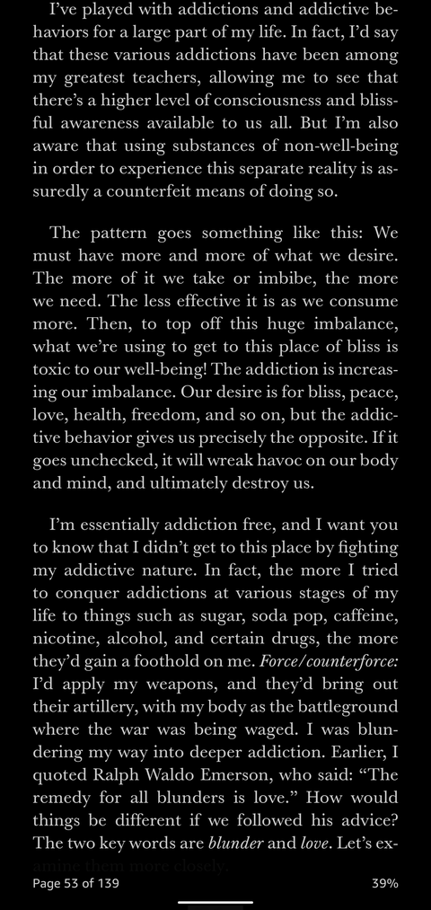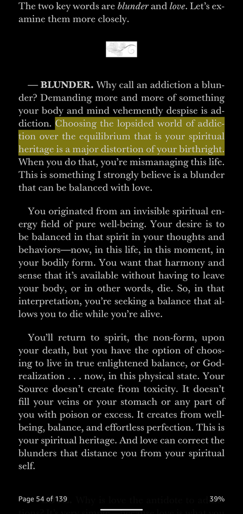 Wow. You literally said exactly what I needed and more. And honestly to get deep into this.. ive been just thinking so much recently about everything &I have an addiction myself but to weed and I know it doesn’t make sense but I found this podcast last week, and she said everything ive thought about weed. It sucks bc it’s literally about to be legal &weed is so normal and it heals some people yk? But the past 5 years ans plus that one ex that punch walls, fucked me up &I formed a literal addiction. I can’t eat much with out it &I don’t like talking about it bc it doesn’t make sense to a lot of ppl , I tell them and there like……. Okay… it’s just weed? But I have felt it’s wrong and I can feel it in my ducking soul when I’m done with this addiction that NOT MANY see is even a problem, I’m going to open and help people so much with that addiction. You saying that like made me cry bc what the fuck. What if this is why this is happening? Maybe yes to help this person with their addiction, but also to clear mine finally. It’s hurts me bc I think to myself how am I suppose to help someone if I have a problem somewhere else, but I don’t have a problem in my life where they do so I can help, I don’t think to lower my mind because of that. But yeah I just really want to help people one day with my words or actions, I want to make a podcast and help I just don’t know yet and I have a lot to clear on my own till I will know. But that’s just nuts you said that to me bc I just been thinking. This is amazing and I will go get those books &maybe I’ll read the other side of it too. My smoking is just too much now. I literally depend on it and I fucking hate it. But I get so bored and anxious with out it. It’s nuts how we met and stuff but it definitely was all for a reason for sure. Thank you so much for real. But I agree it is a good start and I do think this will help something. You are a literal angel it’s just crazy