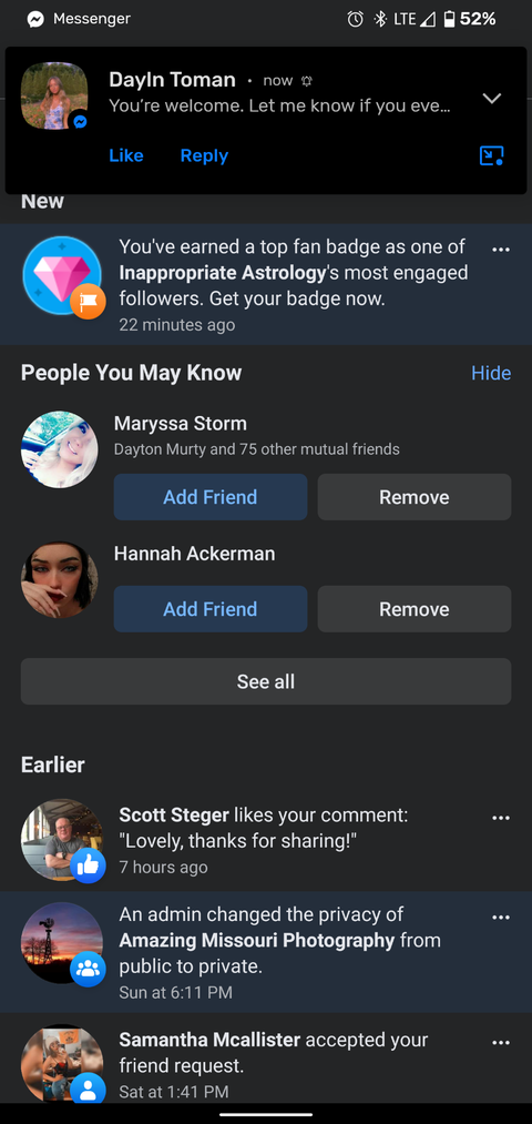 Hey do you know this guy? I have no idea who he is but he just started following me after you added me. Maybe you have a stalker or something - https://www.facebook.com/trenton.woerner.1